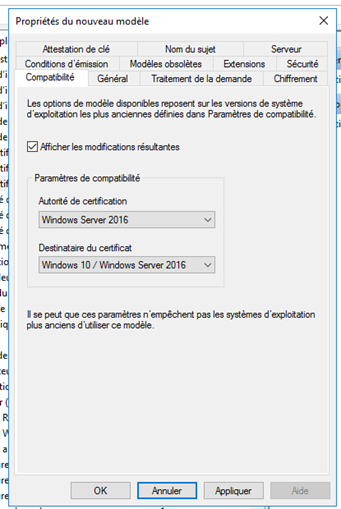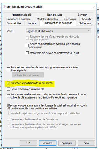 Cette fenêtre va apparaitre et il faudra modifier quelques fonctionnalités comme les rôles, le chiffrement, la compatibilité, l’export de la clé privé, etc.
