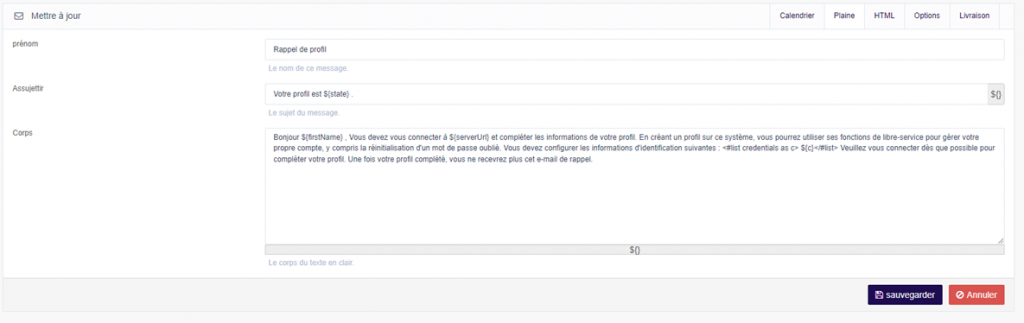 Une fois que l’administrateur a configuré ce schéma il peut envoyer un mail de notification à l’utilisateur pour l’informer du nouveau changement (les modèles de mail ce trouvent dans messages et modèles de messages.)