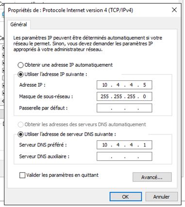 Le serveur DNS de mon PC client est l’IP de ma machine Virtuel Active Directory, comme elle fournit un service DNS, le PC client s’adresse à celle ci.