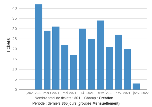 Sur le graphique, nous pouvons voir qu’il y a 301 tickets durant l’année 2021 venant des utilisateurs de la Cafat pour avoir de nouveaux leurs accès.